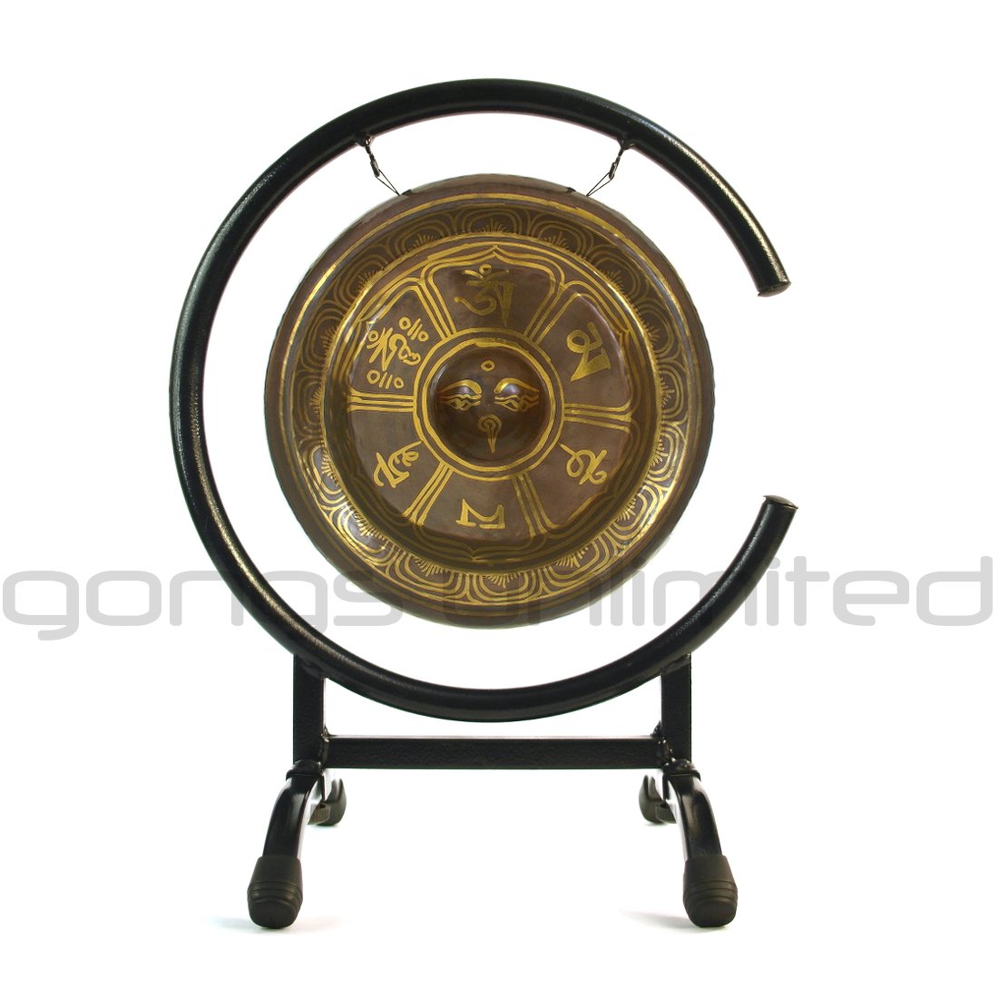 The Tibetan Rising Gong displays symbols that are etched on the gong in Tibetan Buddhist style. Each one is different in style and size because they do each one by hand. That is how it works.