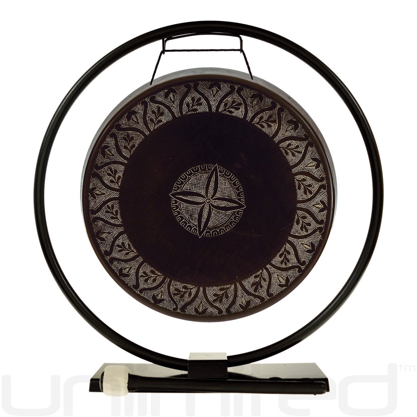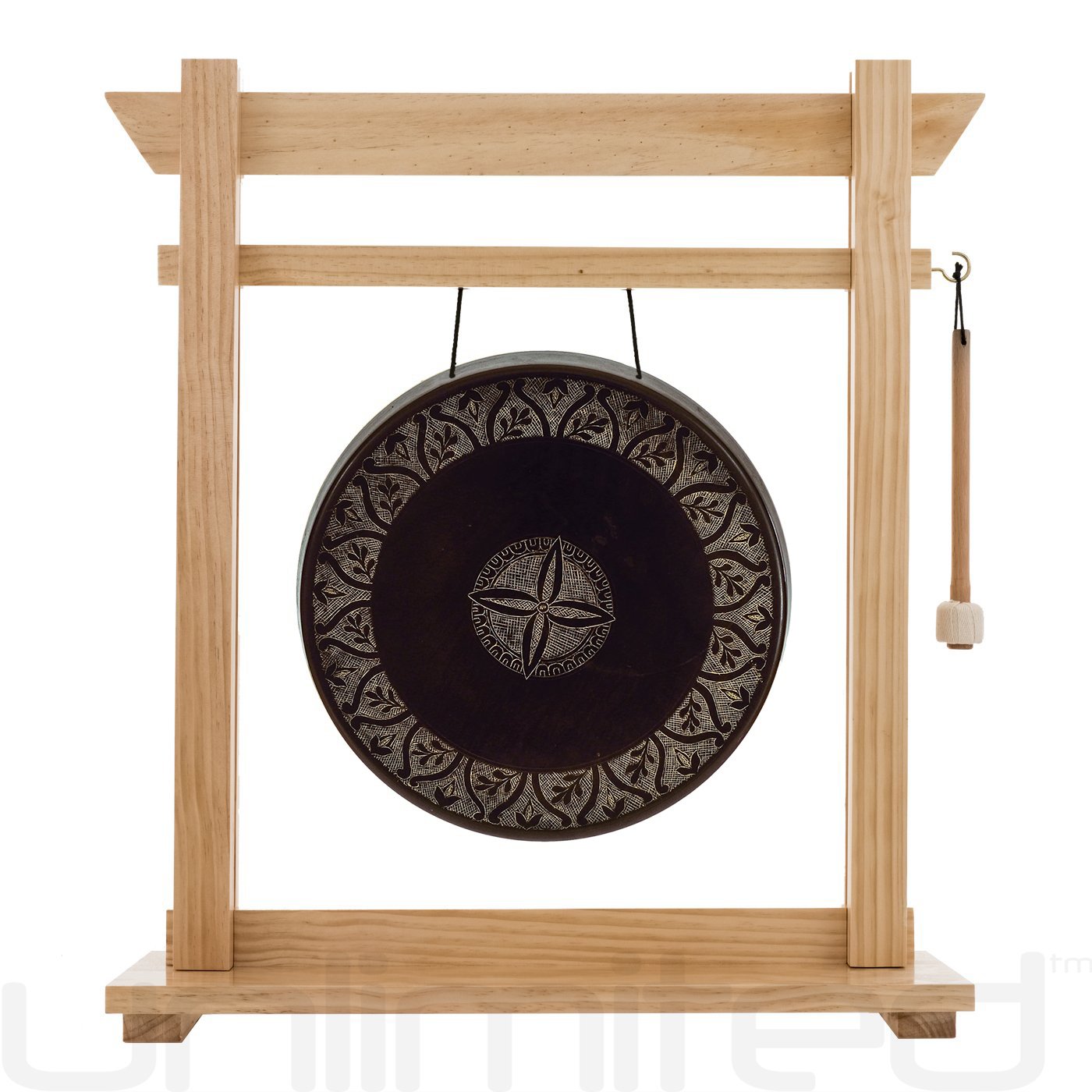 The Mountain Blossom Gong is a bronze gong made in Nepal whose feature is the hand-etching and not the hand hammering. The tone of the gong rings out like a bell instead of crashing.