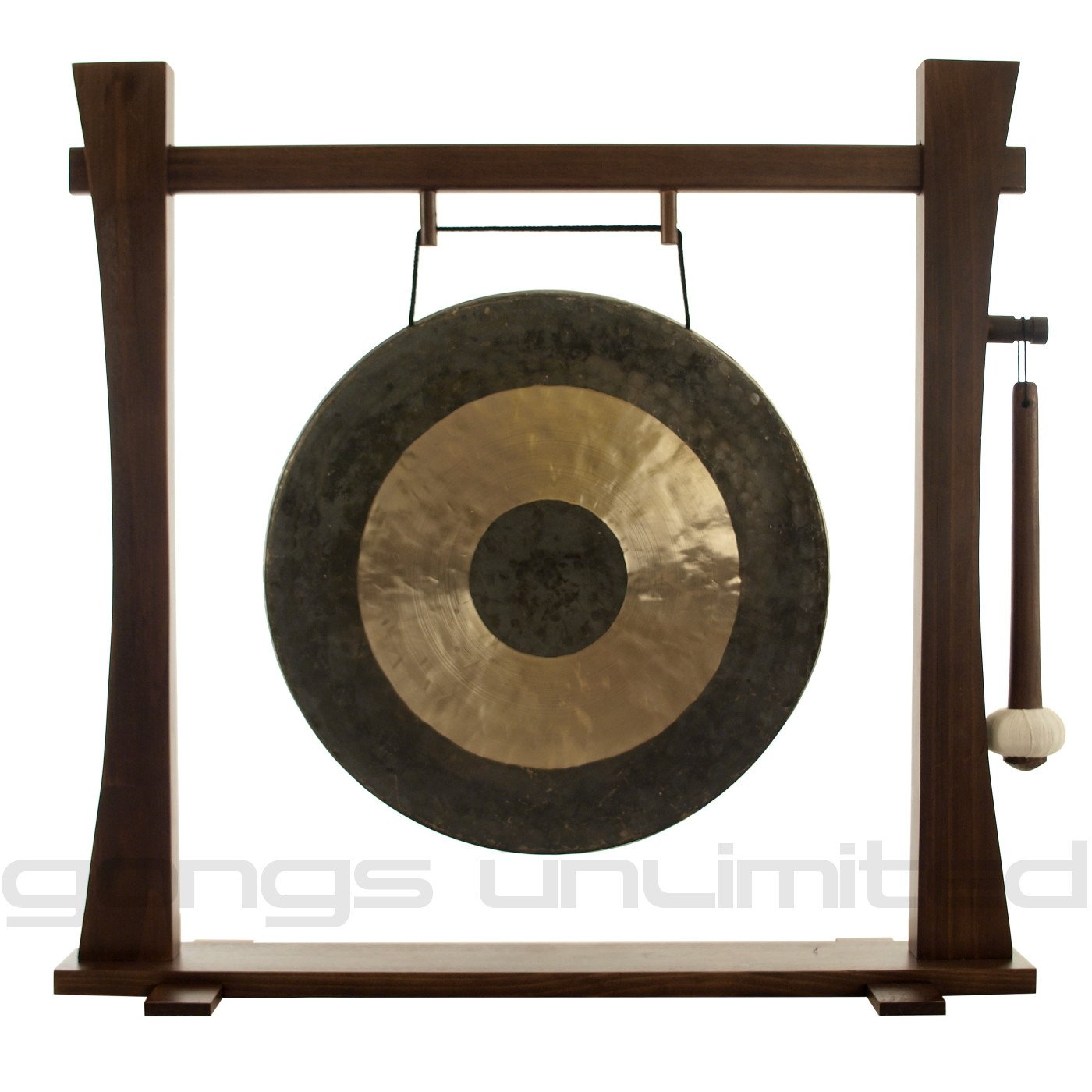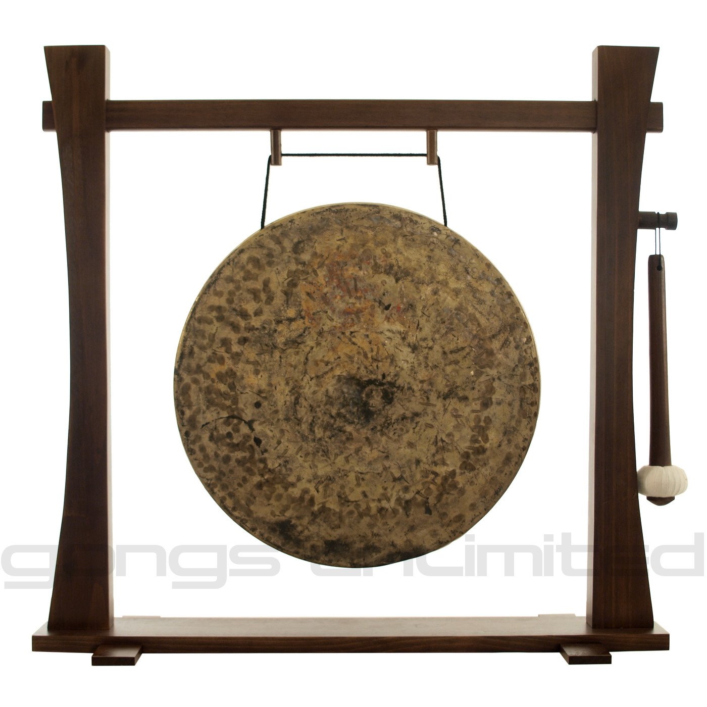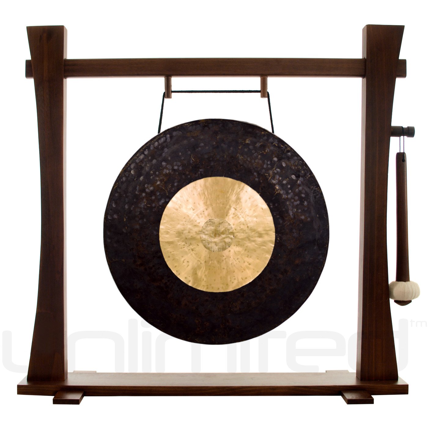 The 22" Wind Gong is bronze and is handmade. It has a traditional gong sound that sounds like the wind when struck with a little force, like a crash or splash. Think like a vertical cymbal. This is a celebratory sound in a gong and one that is great for happy times.
