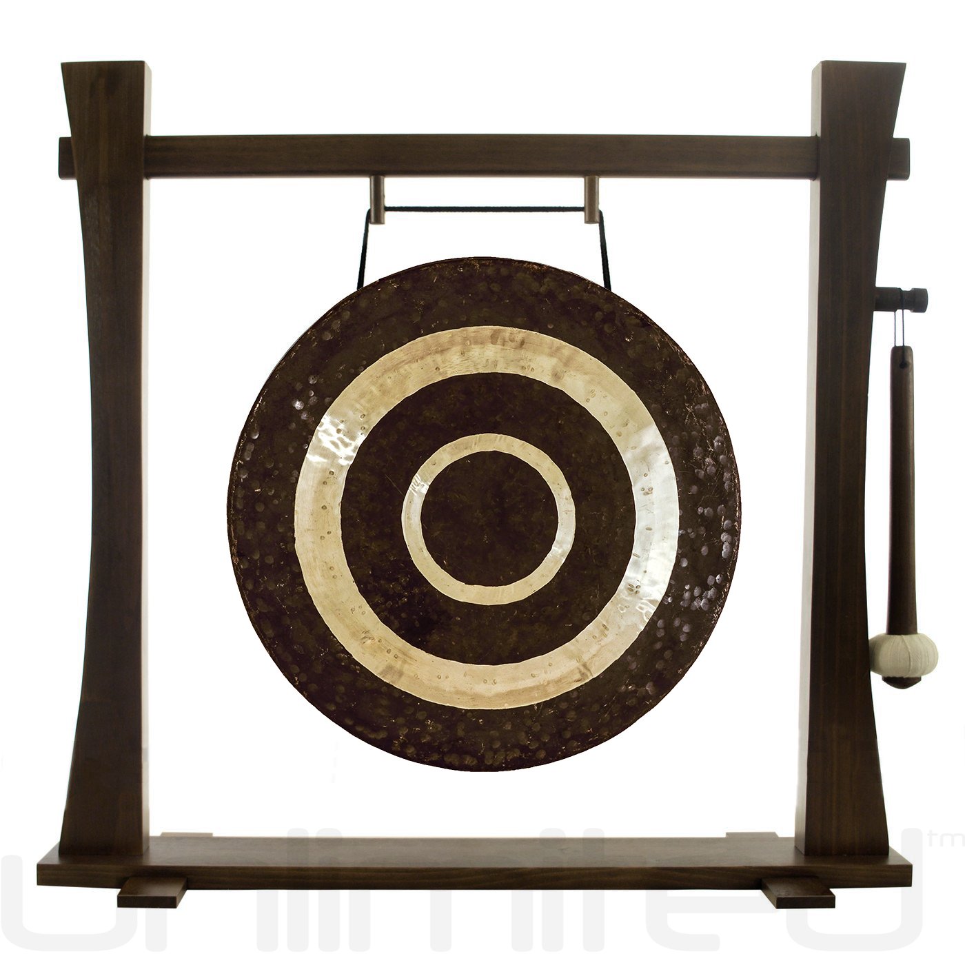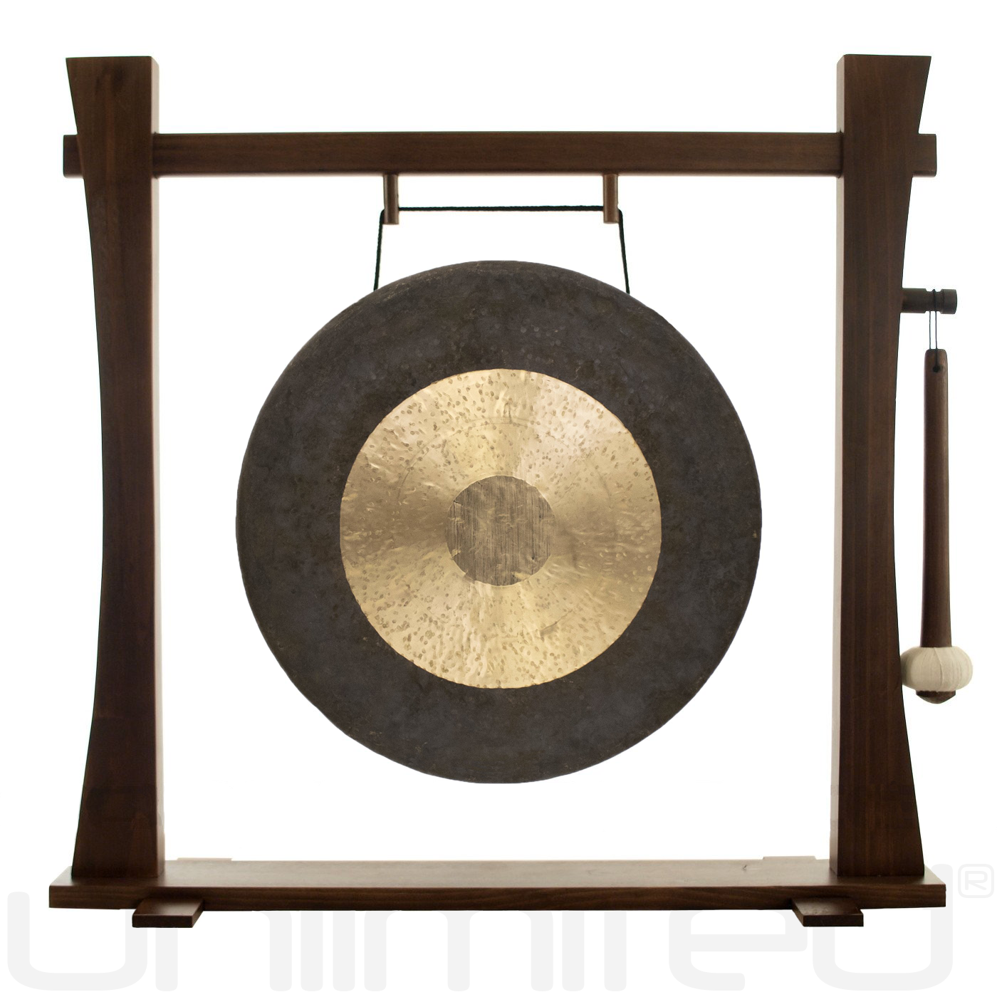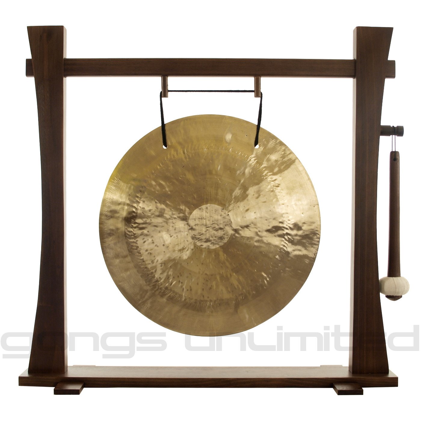 The 22" Wind Gong is bronze and is handmade. It has a traditional gong sound that sounds like the wind when struck with a little force, like a crash or splash. Think like a vertical cymbal. This is a celebratory sound in a gong and one that is great for happy times.