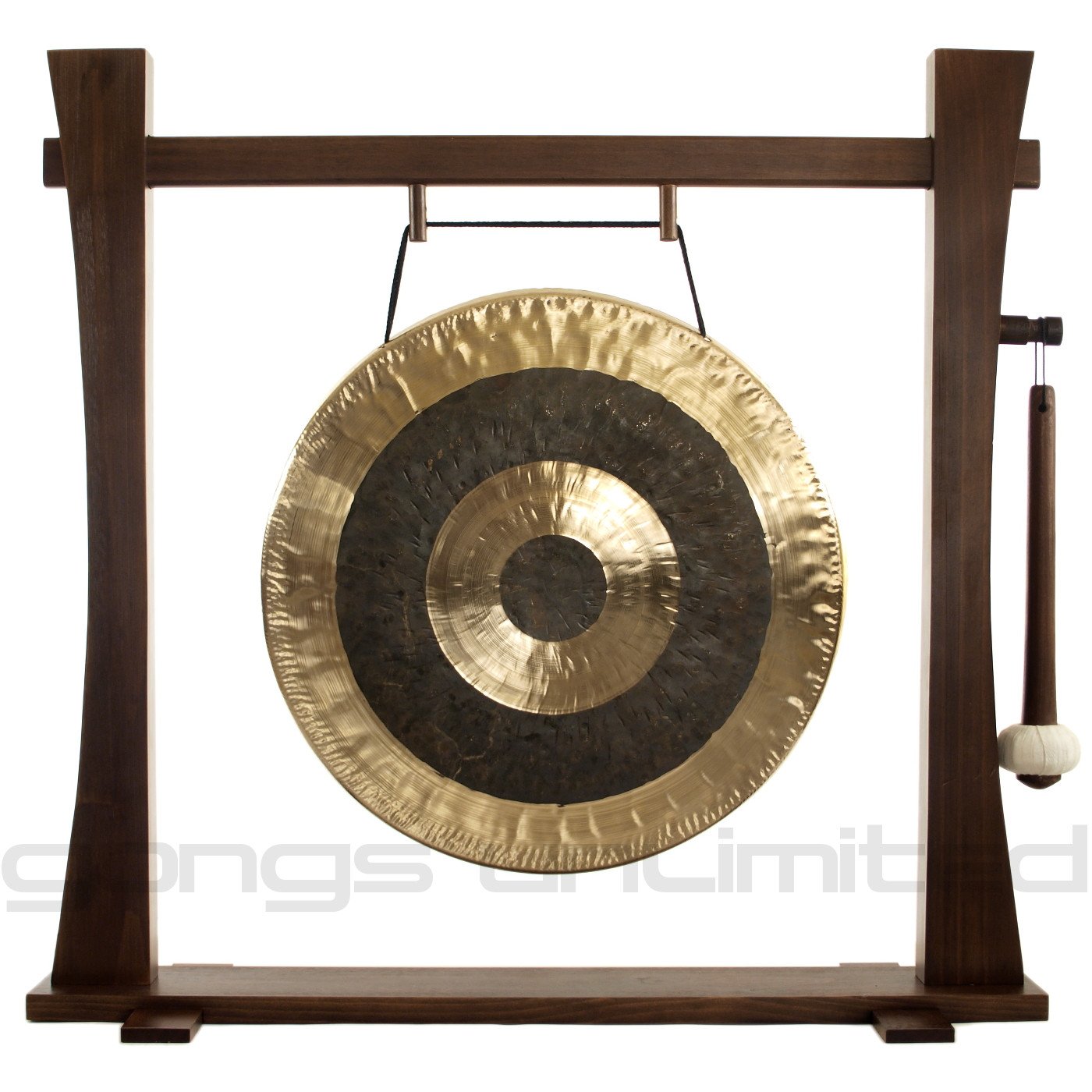 The 20" Heng Gong has a deeper rim than other Chinese Gongs, and is a bit thicker in the bronze, but it is fully lathed like the Wind Gong. This creates a complex and marvelous mixture of sounds. At this size, the gong will have a bell-like purity to its tone when tapped gently with a hard mallet.