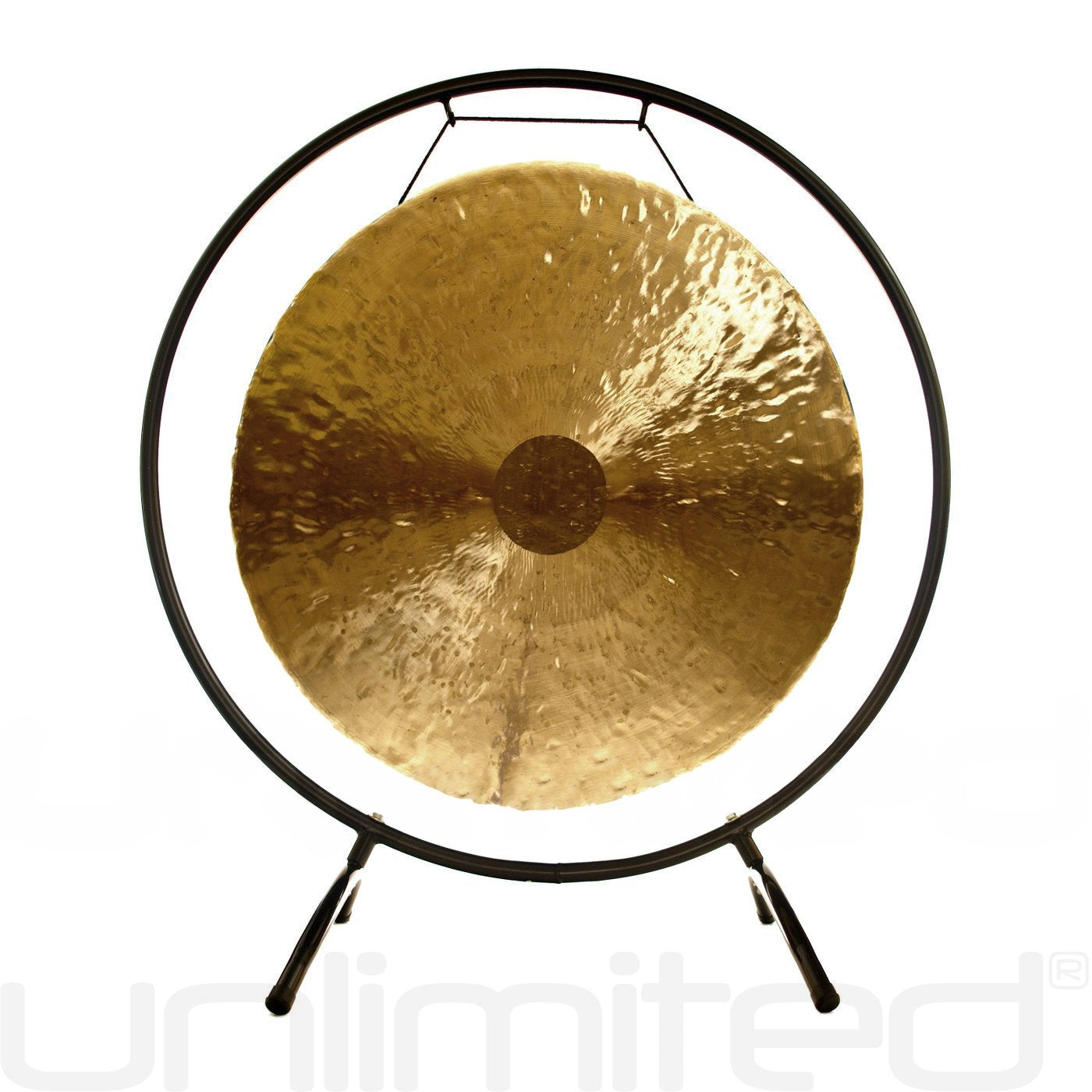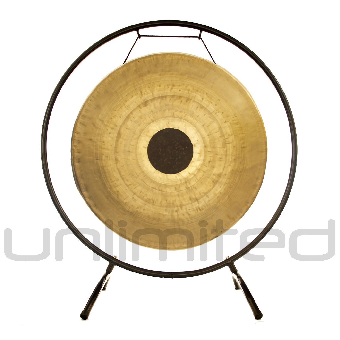 The 20" Heng Gong has a deeper rim than other Chinese Gongs, and is a bit thicker in the bronze, but it is fully lathed like the Wind Gong. This creates a complex and marvelous mixture of sounds. With harder mallets, you can achieve a bell-like purity with this gong.