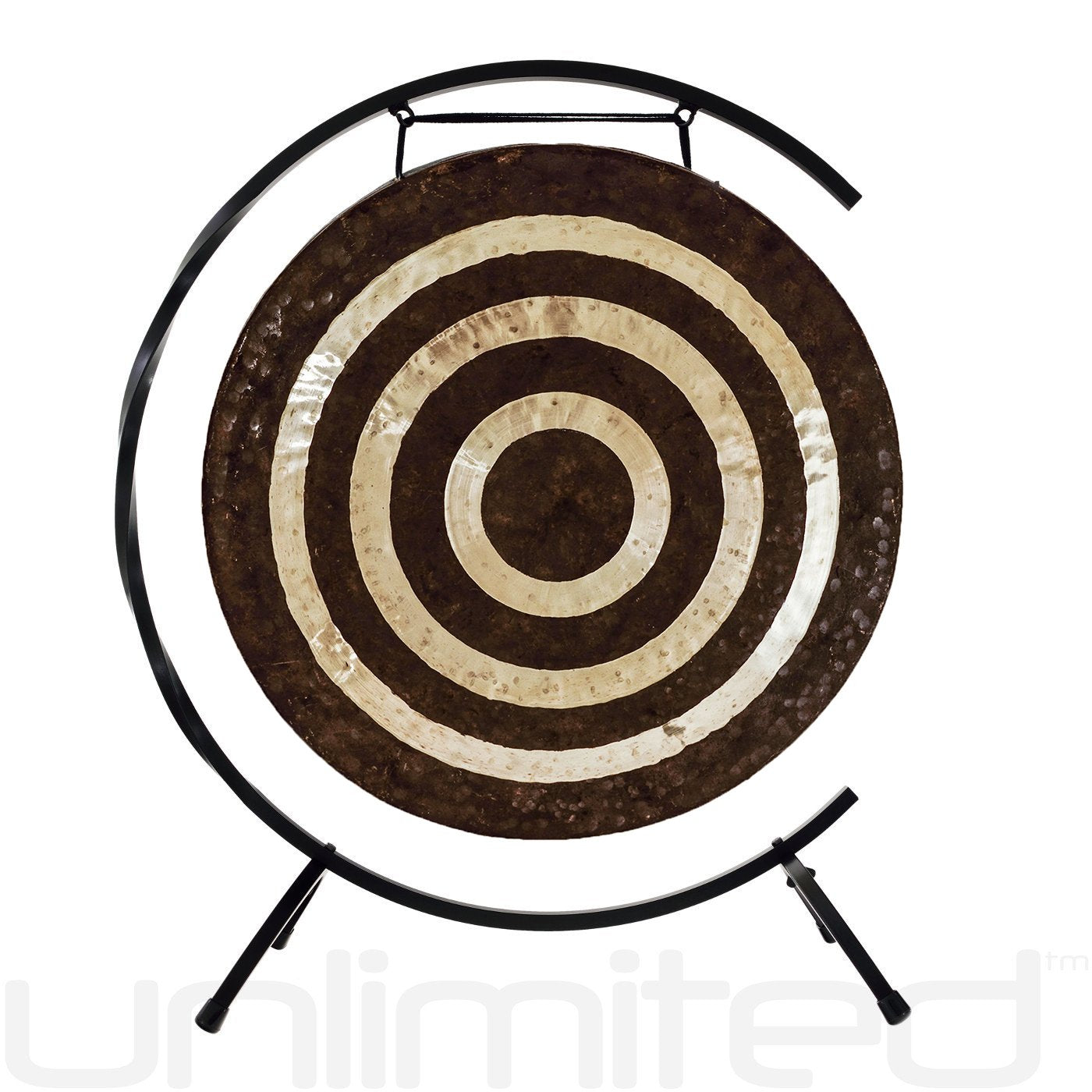 The 32" Chocolate Drop Gong is similar to the classic Chau Gong. In fact, it is basically a Chau Gong with the outer dark ring lathed off. It is made of bronze and has a thick rim on its outer edge that helps focus the tone.