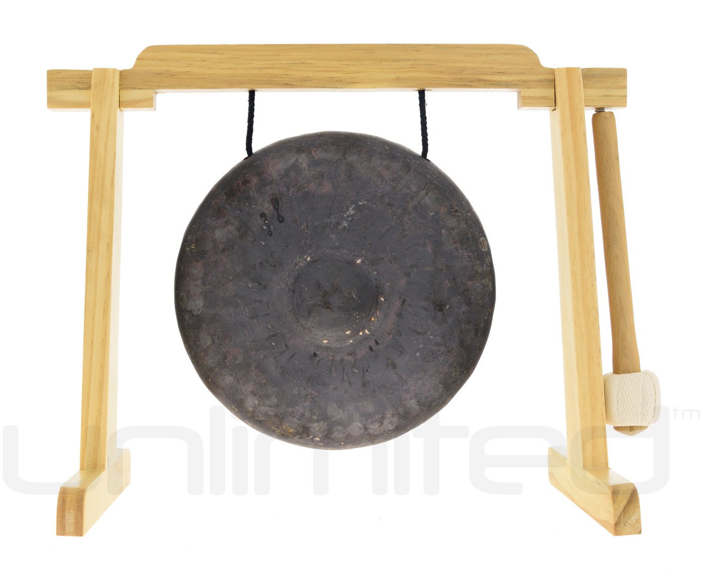 The Tiny Atlas Gong Stand is small and perfect for your desk or credenza. It is as strong as Atlas and it has no problem supporting a gong. That is why these small bronze Chinese gongs are happy to be on the aptly named Tiny Atlas Gong Stand.