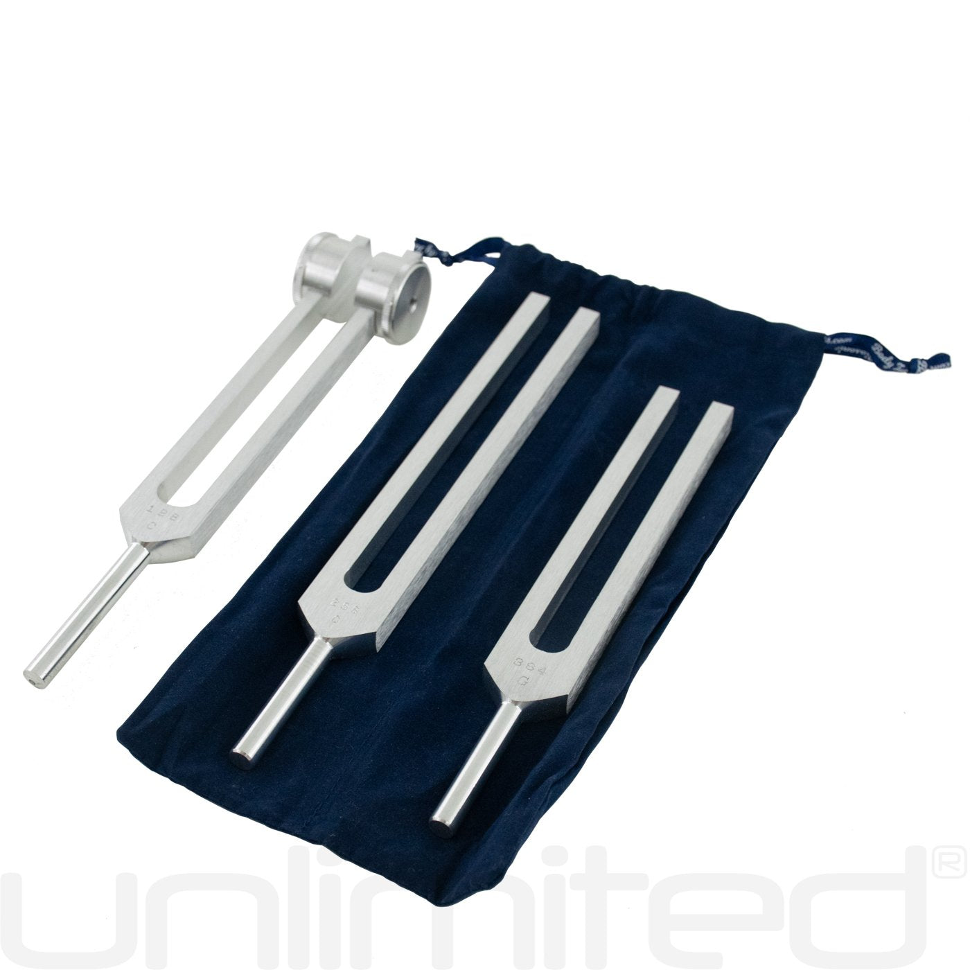 This set of three tuning forks comes with a pair of Biosonics Body Tuning Forks (C and G) and one Otto 128 Hz Weighted Tuning Fork. There is an option to add the book "Human Tuning: Sound Healing with Tuning Forks" by John Beaulieu.