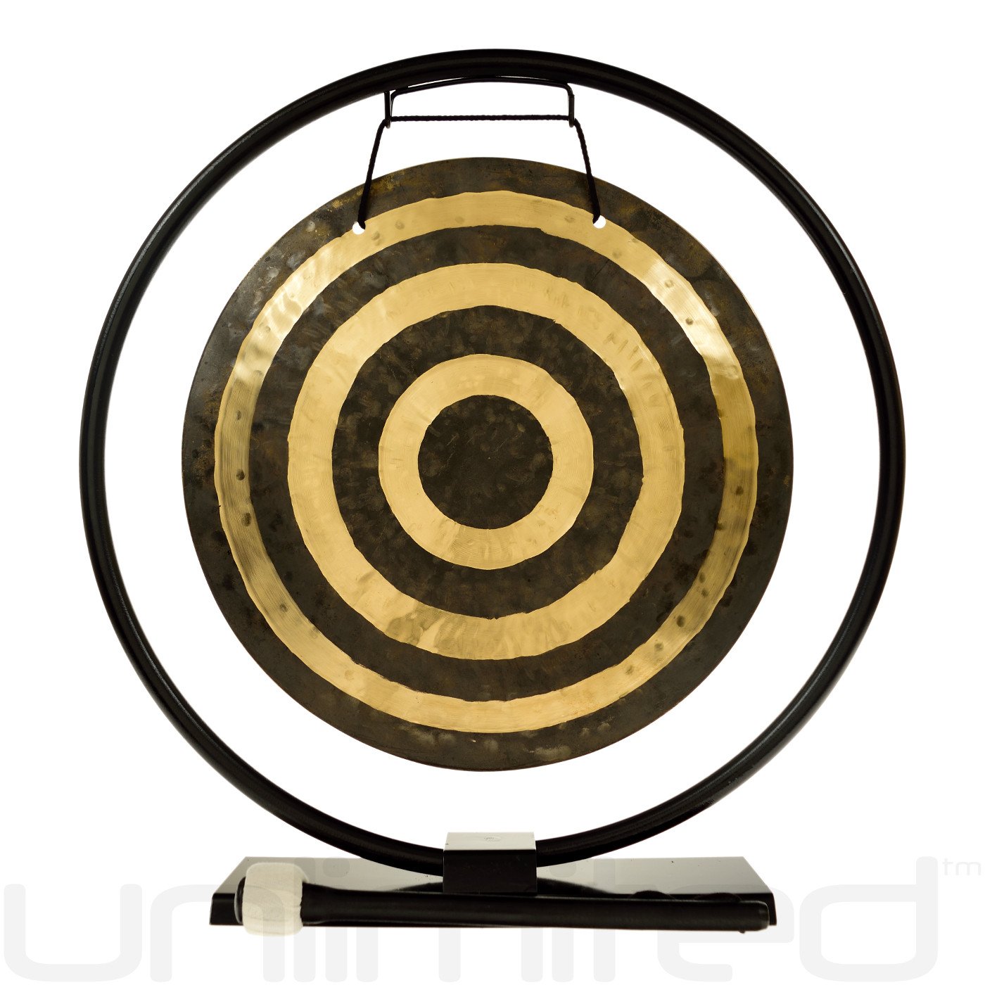 The Au Courant Gong Stand is current, cutting edge, and fashionable! Circular objects are pleasing in their suggestion of softness and in the way they mirror familiar objects found in the natural world. (Planets, fishes mouths, Oreos…)