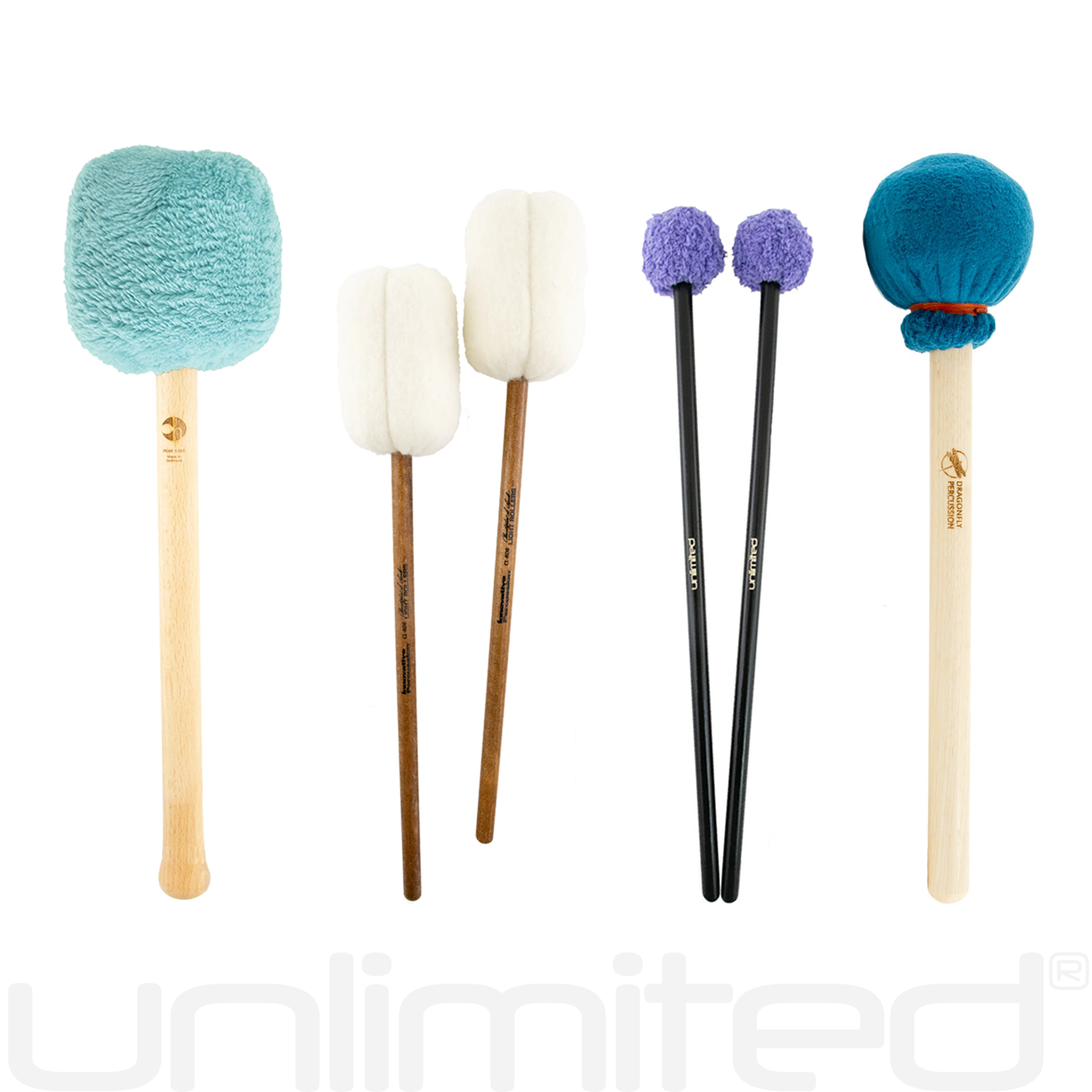 This package includes an Ollihess L460 Mallet (with three color options), Dragonfly Resonance Sound Bath (Teal) Mallet, Pair of Innovative Percussion CL-BD8 Rollers, and the option to add an Ollihess 60 mm Lava Friction Mallet.