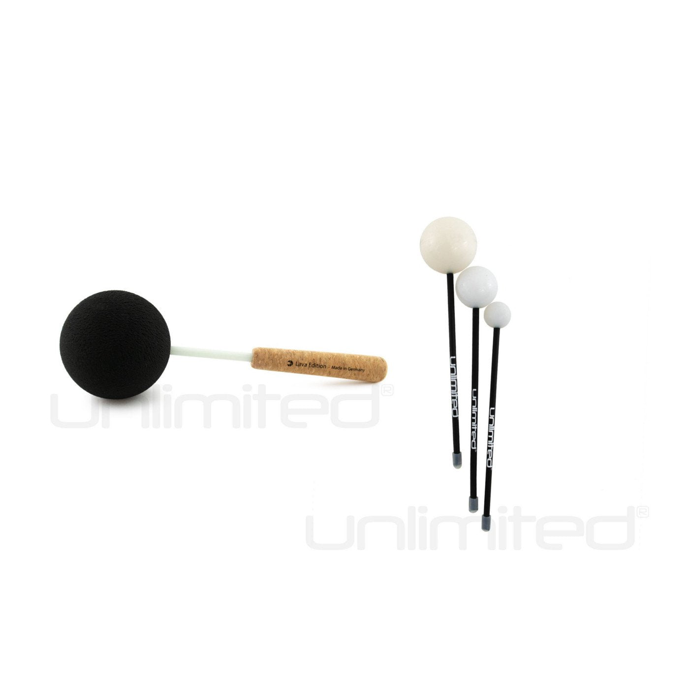 This package includes a pair of Unlimited Gong Rollers, the Unlimited Legendary Classic Mallet, a pair of Unlimited Space Grapes, a Paiste M7 Mallet, and the option to add the Ollihess 70 mm Lava Friction Mallet and/or a Set of 3 Alien Friction Mallets.