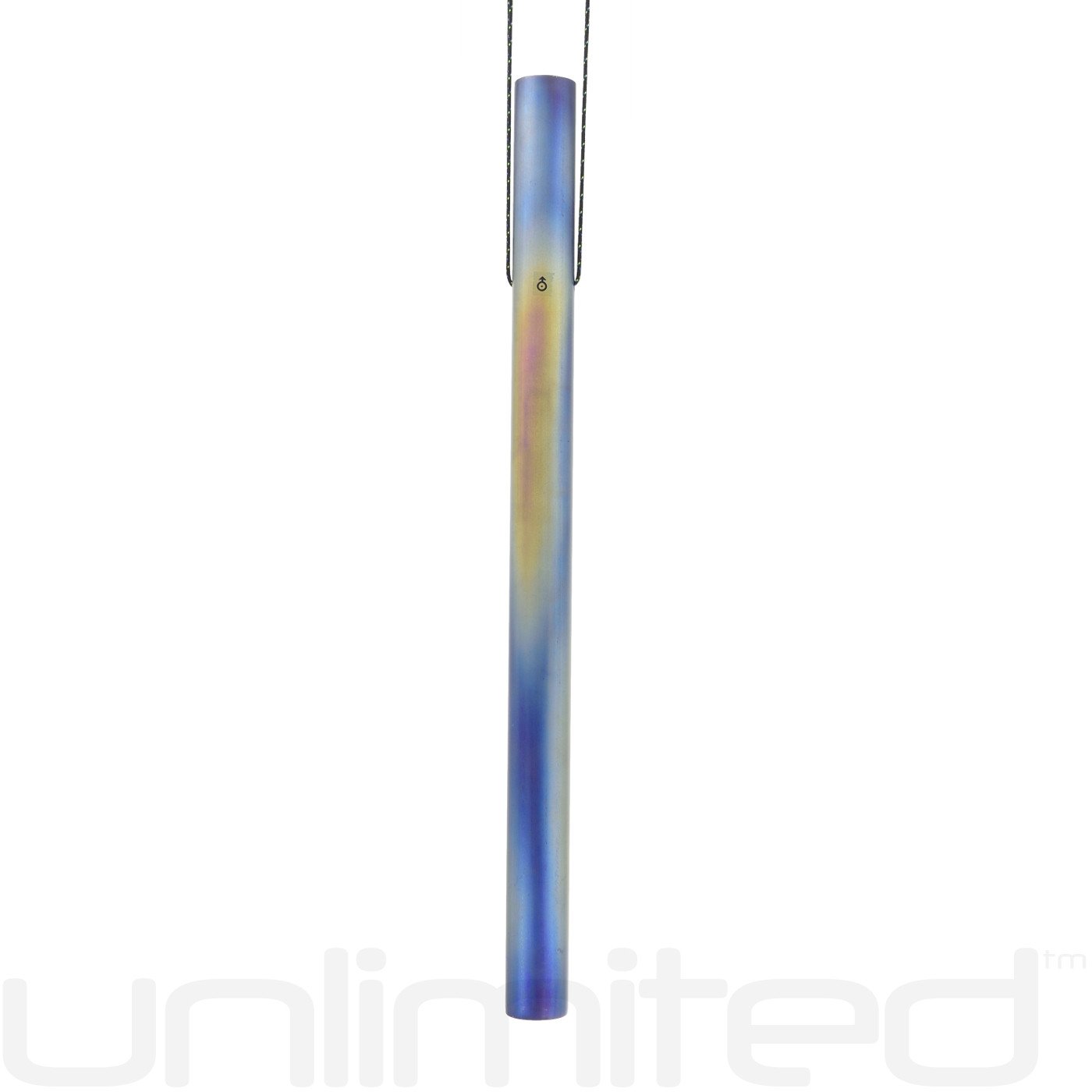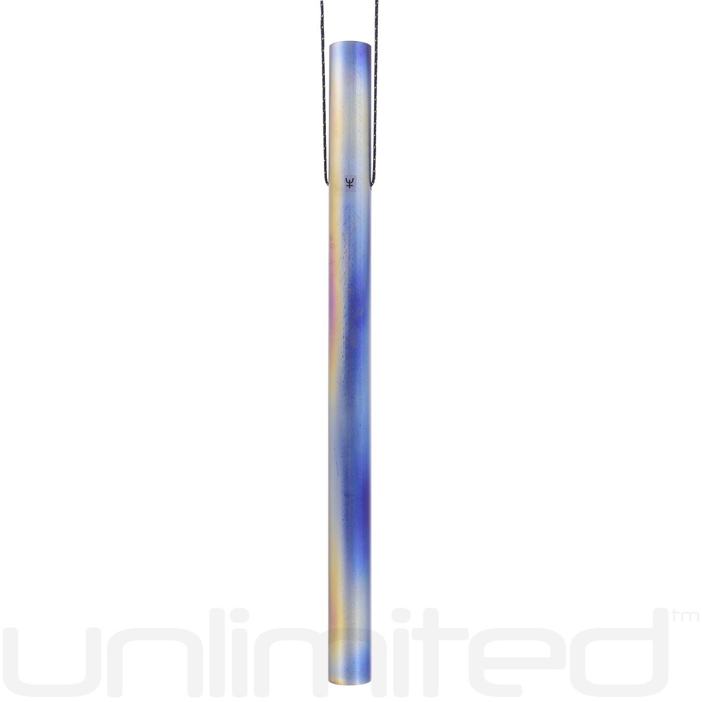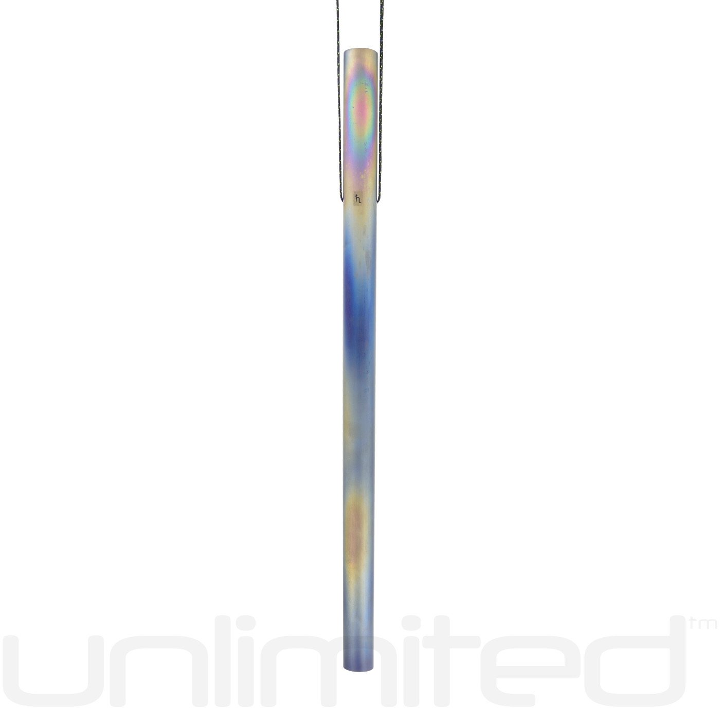 Martin makes these tubes from Titanium. He says they get extraordinary sound qualities of from this metal as titanium is the only metal with a hexagonal crystal structure. Thanks to his using a flame to work the metal, the Cosmic Tubes also get a rainbow-colored surface.