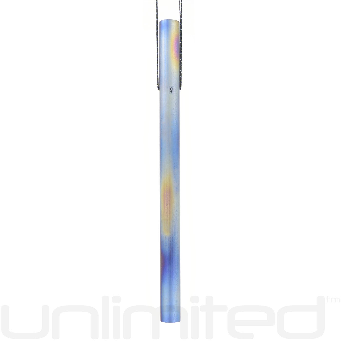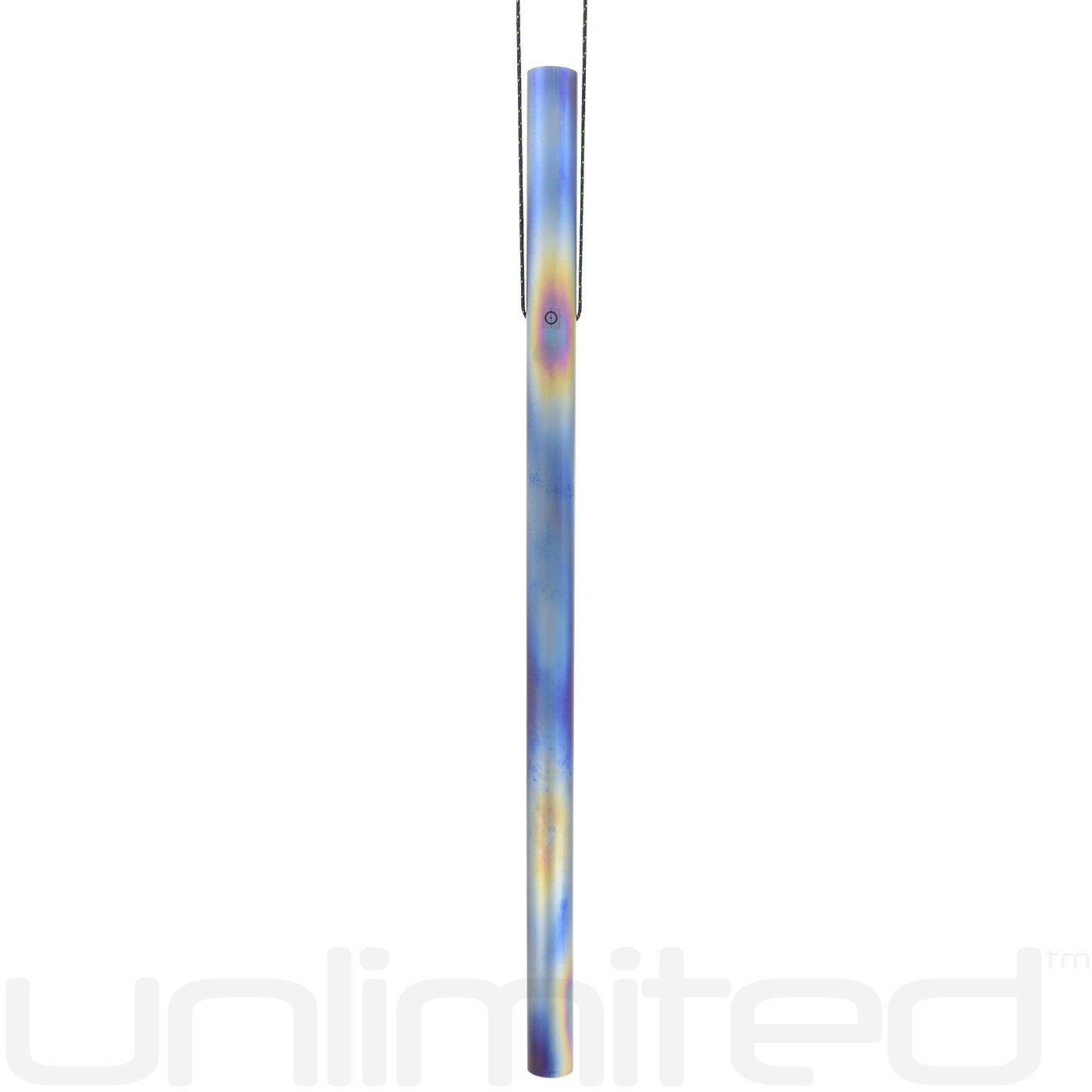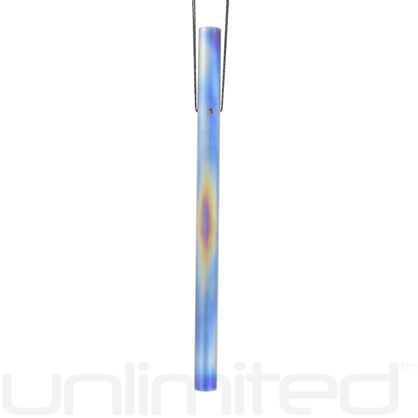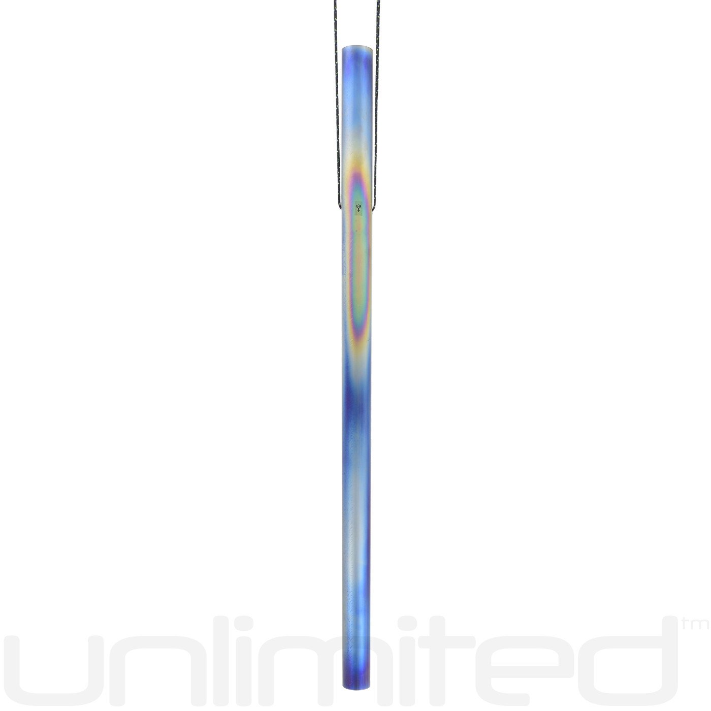 Martin makes these tubes from Titanium. He says they get extraordinary sound qualities of from this metal as titanium is the only metal with a hexagonal crystal structure. Thanks to his using a flame to work the metal, the Cosmic Tubes also get a rainbow-colored surface.