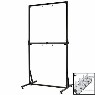 The Meinl Framed Gong Stand with Framed Gong Holder are sold together in this item to create a double gong stand in which two gongs like 36" and 36", or 32" and 40" can be stacked securely on top of each other.
