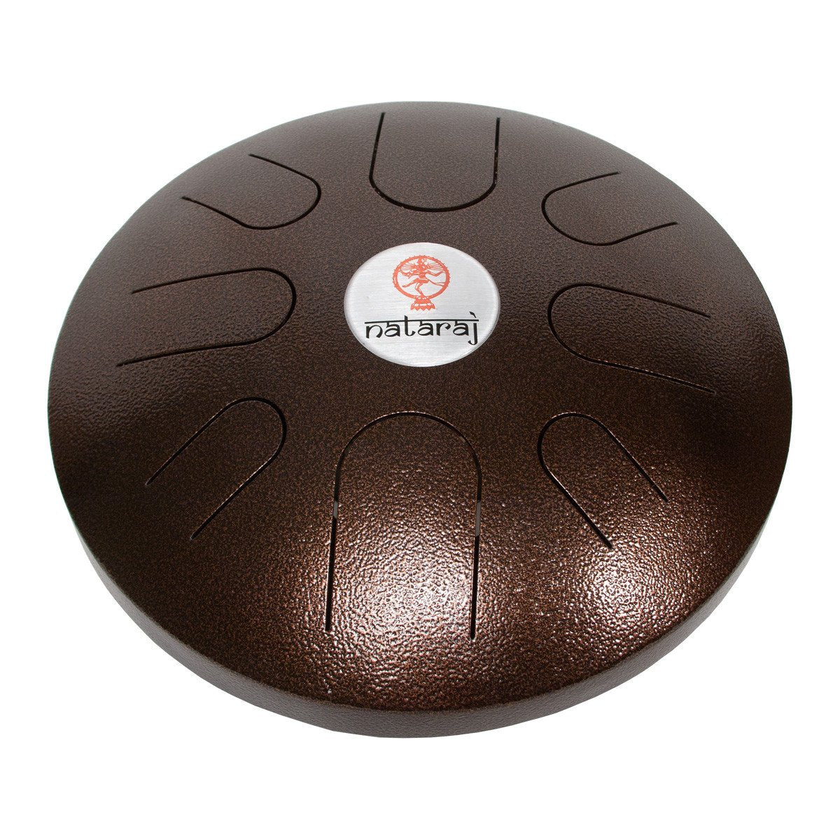This bronze-finished 12" steel tongue drum uses traditional Bhopali tuning. Bhopali is a classical raga or pentatonic scale. The general feeling of this scale is thoughtful, calming, meditative. It is the perfect addition to a sound bath or therapy session, providing a strong layer of harmonic drone and adding another element to your work.