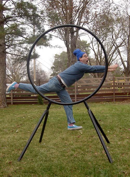 It's a gong stand that can make you feel so excited, that after you assemble it, you may feel like the pictured Mr. Mallethead, like one of the large cats that Siegfried and Roy used to train. ROAARRRRR! You may feel like jumping through it like it was a hoop because you want to please Siegfried, make Roy happy. But please make sure you don't have a gong hanging in it at the time...Or you will bang your head!