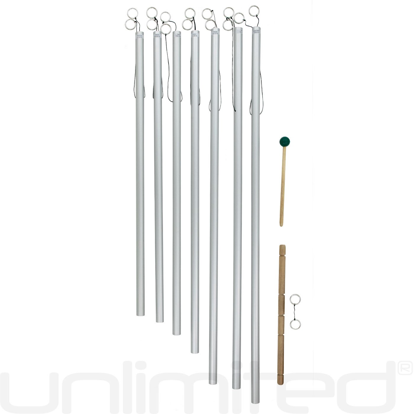 This listing comes with 7 tuned chimes, wood stand, and mallet.
