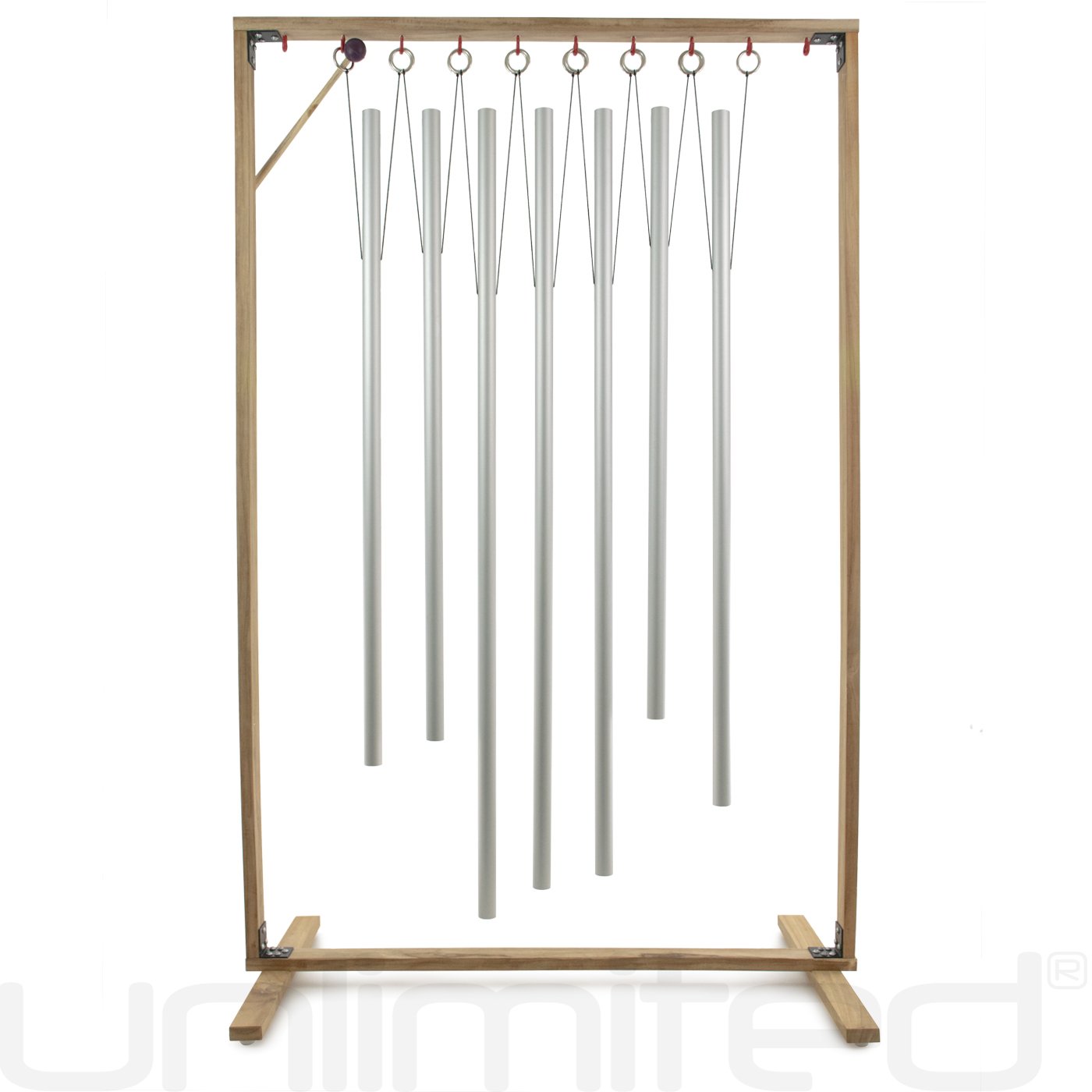 They are made from heat-treated aluminum pipes and hand-tuned, creating clean tones with long sustain and a great potential for emotional and spiritual healing. It comes on a hand-crafted wood stand, made for these tubes.