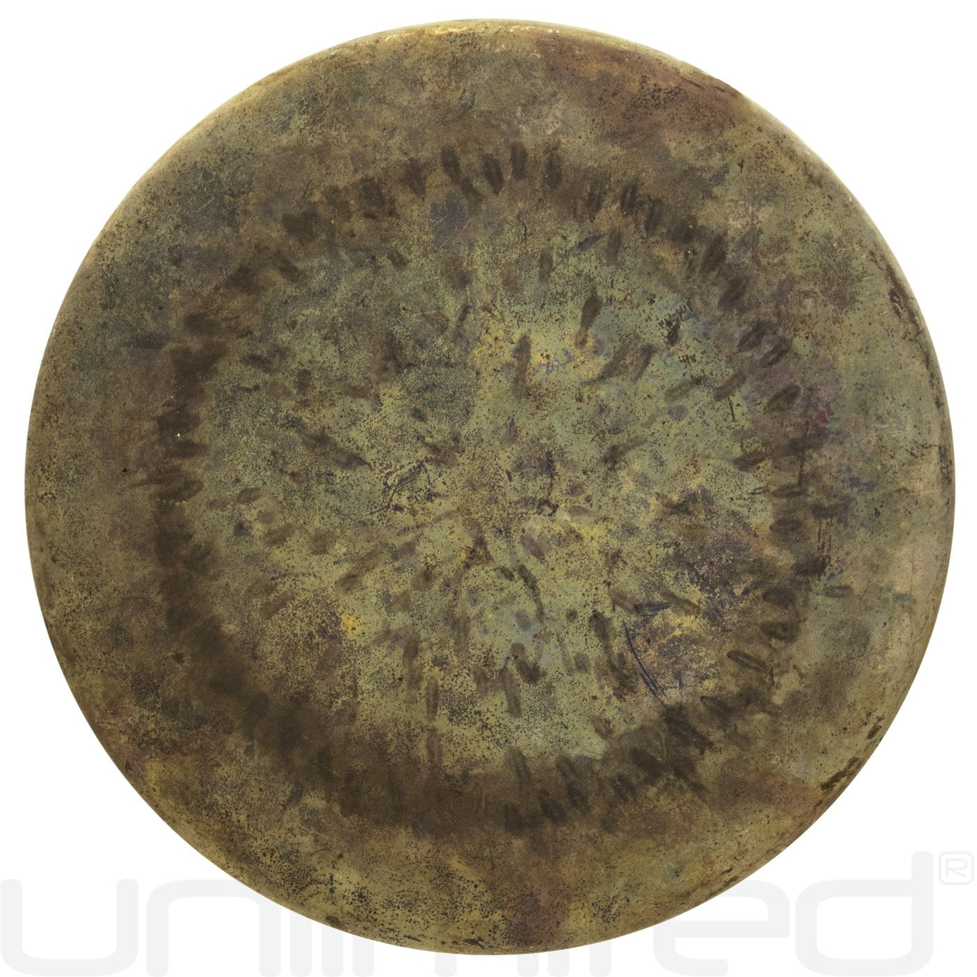The 12" Atlantis Gong is a unique gong created in collaboration with gong makers in China. It is an unlathed gong, so it holds a strong meditative tone. The oxidizing process creates different colors and patterns, which reflect the individual soundscapes in each gong.