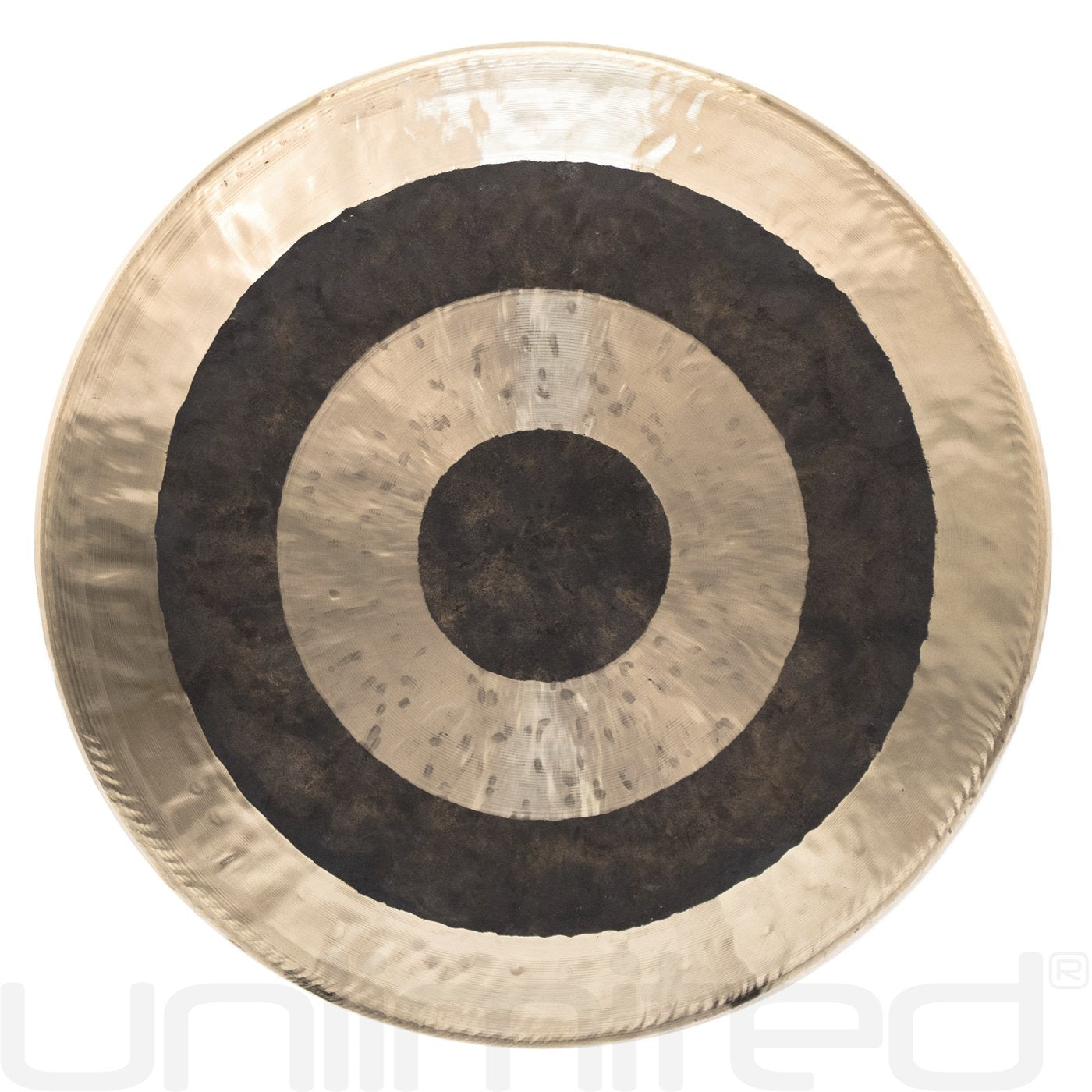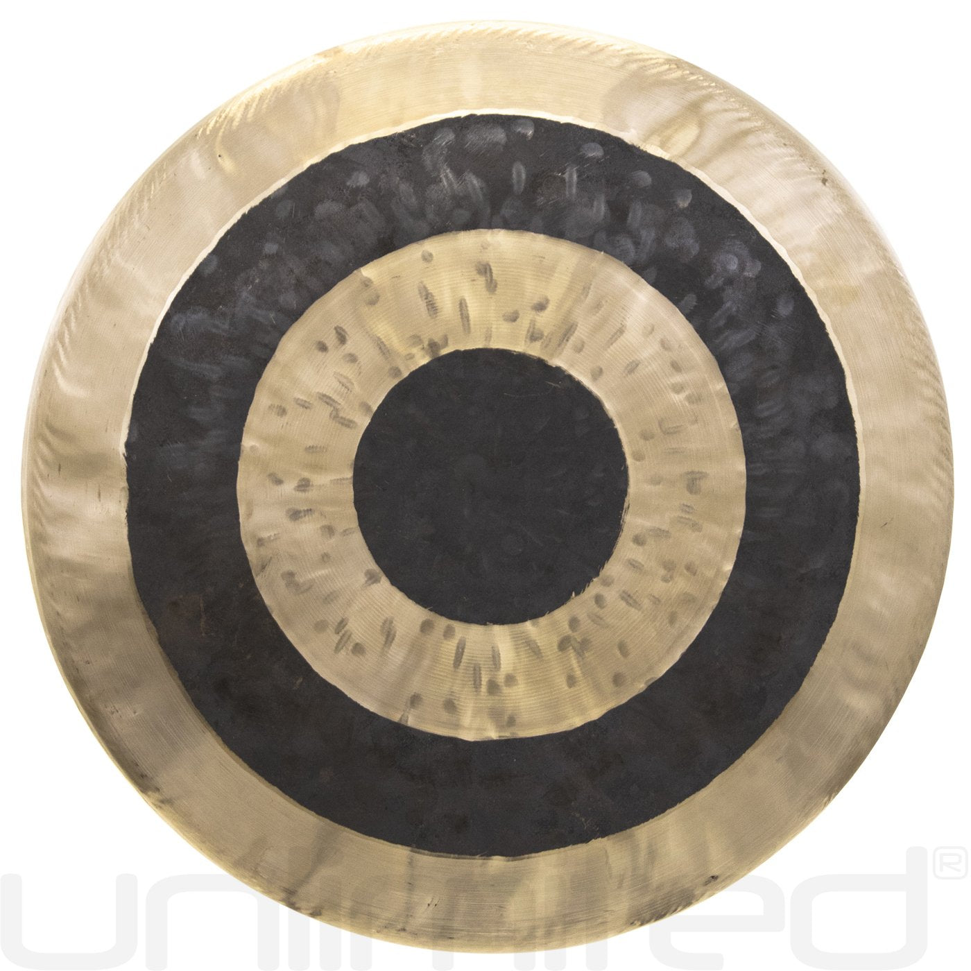 The 22" Subatomic Gong creates a mystic tone when struck, with complex overtones. Often, striking it in the different concentric rings will give you a slightly different tone each time, adding to the mystique of these gongs.
